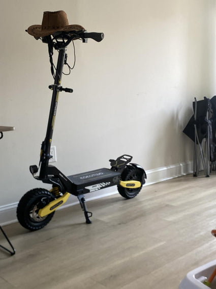 Answer 1: The electric scooter can reach exhilarating speeds of up to 30-40 MPH, allowing for a thrilling ride whether you're commuting or exploring.